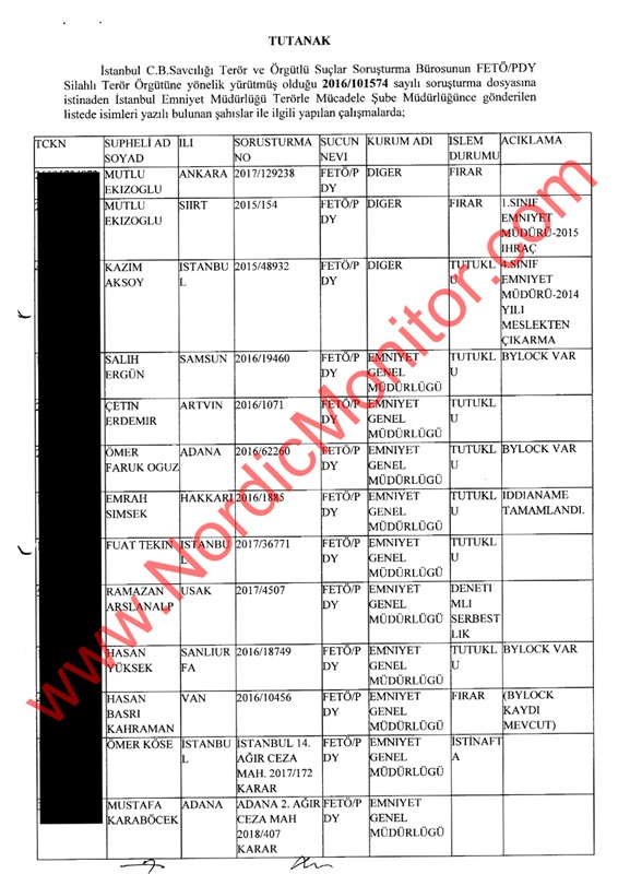وخلال وجوده في محبسه المشدد، أرسل بخطابه المجهول إلى الحكومة؛ لتبدأ عملية الانتقام من مجموعة شرطية قامت بتنفيذ القانون وأيدتها المحكمة في اتهاماتها مرتين؛ إذ تم ثبوت التهمة في محكمة الاستئناف أيضًا أثناء هروبه؛ ما يعني وفقًا لنورديك أن أردوغان استخدم غطاء سياسي لمحاكمة عدد من المسؤولين؛ لمحاولة إحكامهم السيطرة على ملف الإرهاب في تركيا؛ ما تسبب بعدها في تنفيذ حوادث ضخمة لداعش بداخل البلاد، كما أن بعض هؤلاء الشرطيين تم محاكمتهم أيضًا؛ لرغبة الرئيس في إخفاء قضايا فساد كشفوها في 2013.