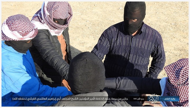 نشرت حسابات على مواقع التواصل الاجتماعي، تابعة لناشطين في تنظيم داعش، الإثنين 11 نوفمبر 2019، صورًا تظهر مبايعة مجموعة من المسلحين، لزعيم التنظيم الجديد، «أبو إبراهيم الهاشمي القرشي».