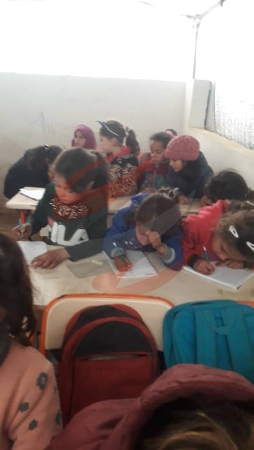 لكن الآن استبدلوا الفصل الدراسي «بالخيمة»، بالإضافة لنقص المقاعد، ويضطر التلاميذ الجلوس على الأرض، وأحيانًا لا توجد «سابورة» أو كتب فيتشارك عدد من التلاميذ في الكتاب الواحد، كما أن أرض الخيمة أو الملعب أمامها مغطاة «بالطين» جراء الأمطار والمياه، فلا توجد أراضٍ إسمنتية مثلًا .