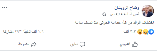 اليوم الأول للانقلاب الحوثي، وكان آخر ما كتبه «الرويشان» على صفحته بموقع