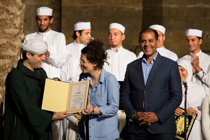 وما بين أطفال لا تزيد أعمارهم على التسع، وشابات في عمر العشرين، وقف المتخرجون من الجنسين، مرتدين سترات بيضاء، ويرددون في صوت شجي هادئ: «قمر سيدنا النبي قمر»، من بينهم كان شاب في عامه الـ21، هو محمود خالد ابن محافظة سوهاج، جنوب القاهرة.