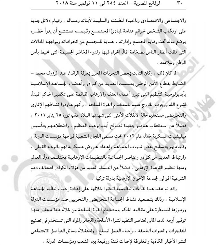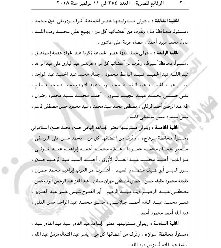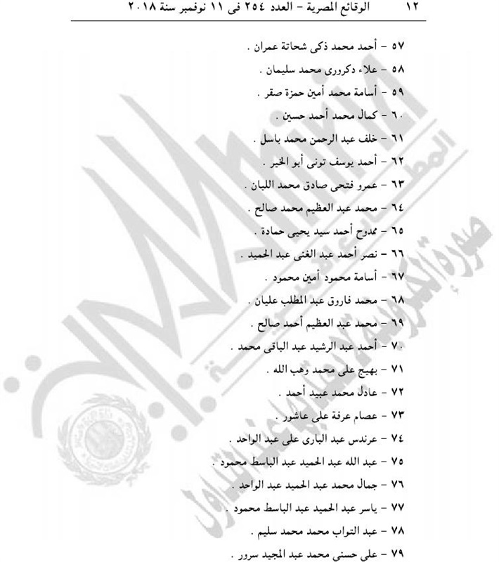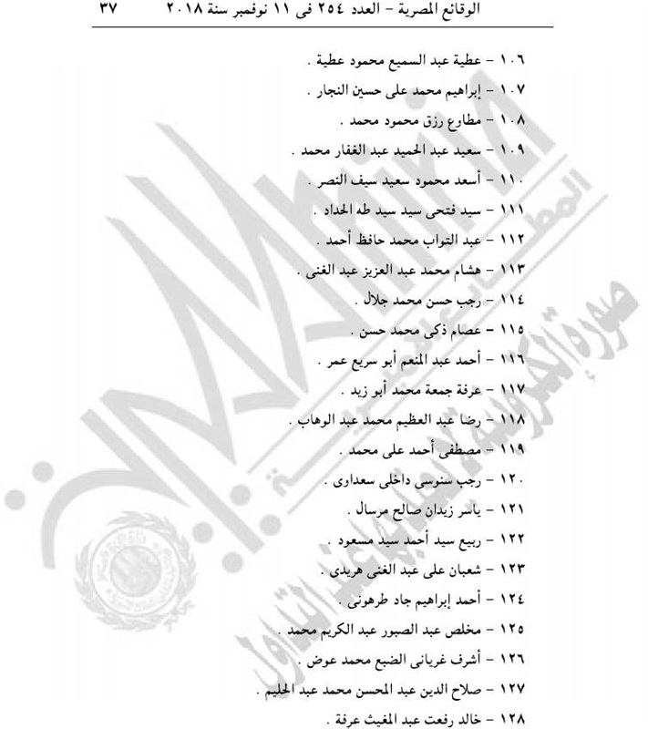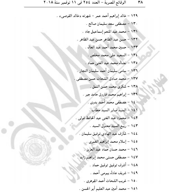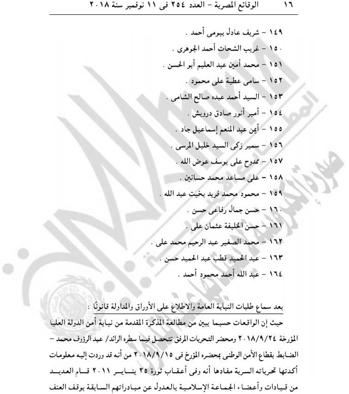نشرت الجريدة الرسمية، اليوم الأحد، قرار محكمة الجنايات المنعقدة بمعهد أمناء الشرطة بطرة، رقم 1367 لسنة 2018، برئاسة المستشار محمد شرين فهمي بإدراج، 164 فردًا من المنتمين إلى الجماعات الإسلامية على قوائم الإرهاب.