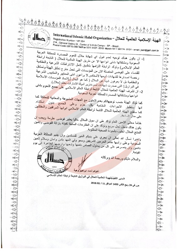 3- أغذية حلال وهي شركة برازيلية تابعة للمركز الإسلامي البرازيلي