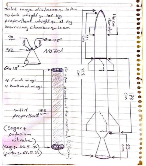 بعدها شرع ذهب في تصميم صواريخ عدة مختلفة، واستخدم برنامج محاكاة الكمبيوتر لاختبار قدراتهم، وكان أحد التصميمات لصاروخ بطول ستة أمتار، يُدعى «المغرب»، والذي تميز بشعار داعش المرسوم على السلاح.