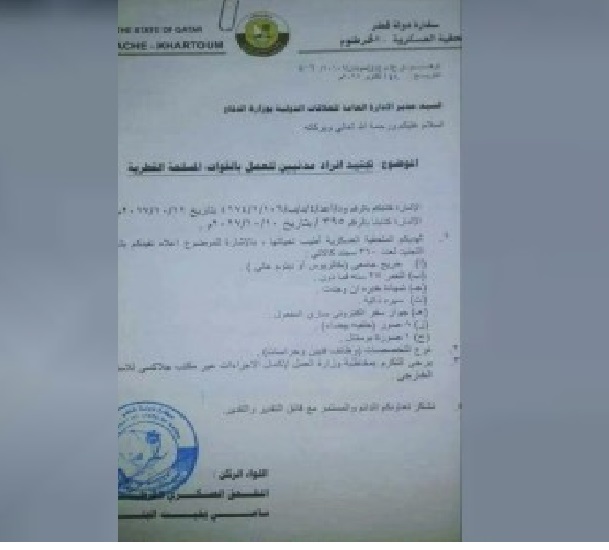 أكتوبر2017، نشر حساب «قطر مباشر» المعارض، صورة لوثيقة مسربة من الملحقية، تطالب فيها وزارة الدفاع القطرية، بتجنيد مدنيين سودانيين؛ للعمل بقواتها المسلحة.