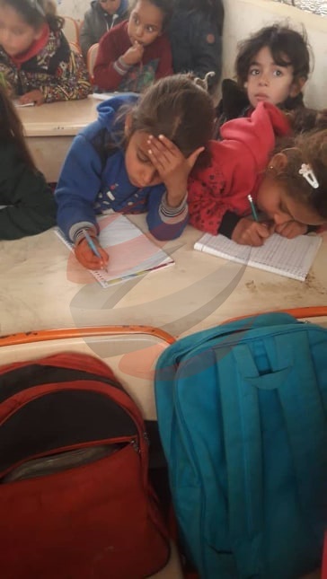 لكن الآن استبدلوا الفصل الدراسي «بالخيمة»، بالإضافة لنقص المقاعد، ويضطر التلاميذ الجلوس على الأرض، وأحيانًا لا توجد «سابورة» أو كتب فيتشارك عدد من التلاميذ في الكتاب الواحد، كما أن أرض الخيمة أو الملعب أمامها مغطاة «بالطين» جراء الأمطار والمياه، فلا توجد أراضٍ إسمنتية مثلًا .