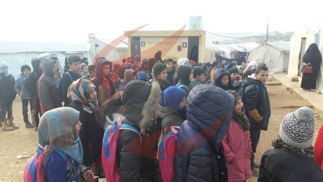 في مخيمات إدلب الرسمية، يتلقى بعض التلاميذ تعليمًا ربما يكون دون المستوى- ساعتين يوميًّا- والذي تأثر بموجة النزوح الجديدة إذ يلجأ النازحون للسكن بهذه الفصول بسبب التكدس، بينما يُحرم التلاميذ في المخيمات العشوائية من هذا القدر القليل من التعليم، تحدث «المرجع» مع التلاميذ وأمهاتهم والمعلمين النازحين إلى إدلب والمهجرين من العراق، يحكون عن معاناتهم وأحلامهم، إذ باتت المدراس عبارة عن خيام بيضاء صغيرة بها القليل من المقاعد و«سابورة» بيضاء، أحيانًا يُوفر للأطفال الصغار بعض الأنشطة الثقافية من رسم وتلوين، يدرس بعض الأطفال فيها من الساعة السابعة حتى الظهر، والبعض الآخر لا يحصل إلا على ساعتين فقط.