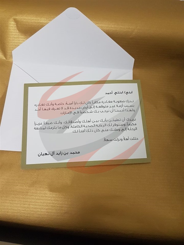 وأشار إلى أن هذا يعتبر أول تعامل له مع الشعب الإماراتي، الذي نال منه كل الاحترام والتقدير، شاكرًا الشعب والحكومة، قائلًا: إن الإمارات منقذنا.
