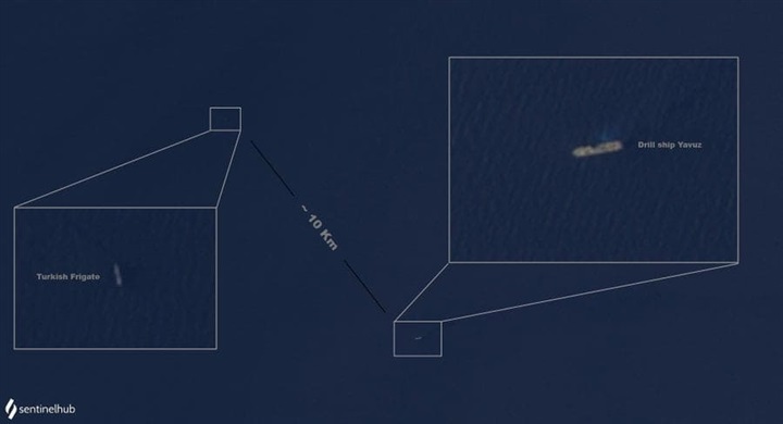 وتشير صور حصل عليها «المرجع» إلى أن ظهور سفينة حفر ترفع العلم التركي جنوب غرب قبرص ترافقها على الأرجح فرقاطة حربية تركية من مسافة قريبة، وذلك في مطلع يوليو الحالي.