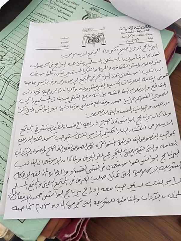 وبحسب المذكرة الصادرة عن وكيل نيابة استئناف جِبلة، أحمد محمد المنيفي، الموالي للميليشيا، فإن «حيازة برنامج واتس آب، تشكل جريمة فعل فاضح»، معللًا ذلك بالقول إن واتساب أصبح «يُستخدم غالبًا في نشر الفساد من خلال تبادل الكلام الفاحش والصور والمقاطع الخليعة المخالفة لأحكام الشريعة الإسلامية».