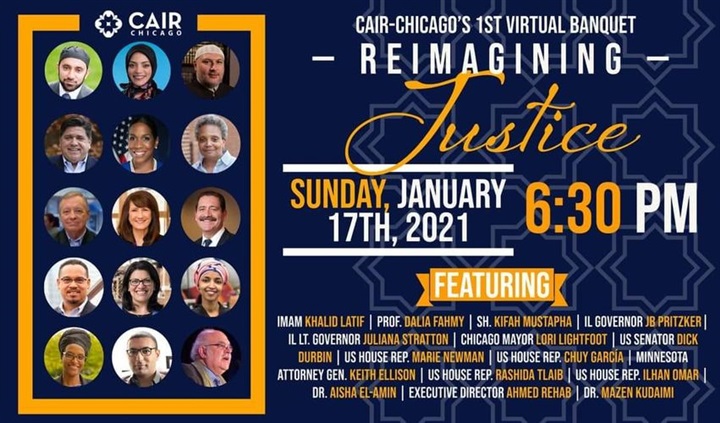 وأقيمت هذه الاحتفالية في 17 يناير 2021 بحضور النائبتين عن الحزب الديمقراطي إلهان عمر دائمة الحضور في مناسبات الجماعة، وكذلك النائبة رشيدة طالب، وبعض السياسيين منهم عمدة شيكاغو، وأثار حضور النائبتين اعتراضات سياسية وإعلامية على ظهورهما في حفلات تهدف لجمع التبرعات لصالح مؤسسة مشكوك في أهداف وجودها في المجتمع الأمريكي.