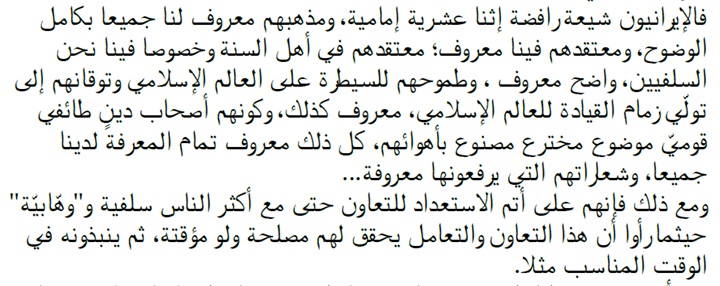 كتب صاحب الرسالة يقول: «فالإيرانيون مذهبهم معروف لنا جميعًا بكامل