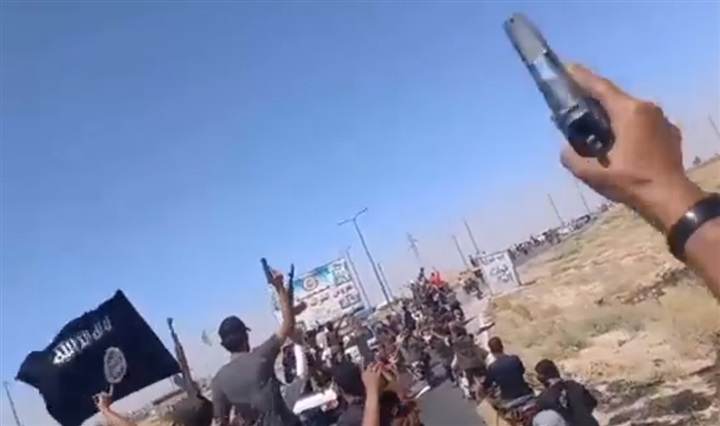 الذين رفعوا راية داعش خلال المسيرة، وكان بعضهم يحمل أسلحة خفيفة ويستقلون سيارات