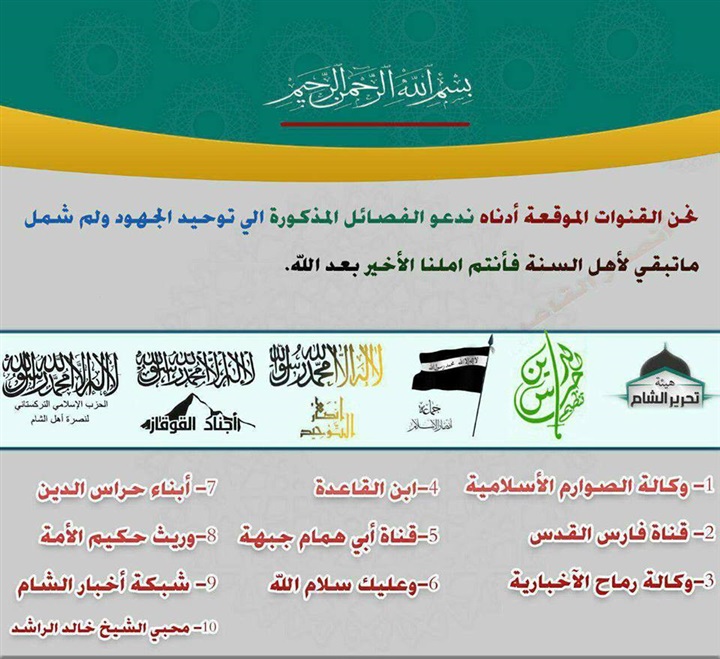التوحيد، وأجناد القوقاز، والحزب الإسلامي التركستاني لنصرة أهل الشام».