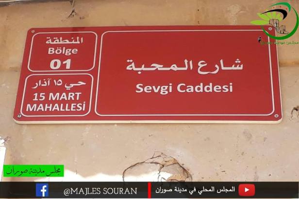 نشر المجلس المحلي لمدينة صوران، شمال شرق محافظة حلب السورية، صورًا للافتات بالشوارع غيرت تركيا أسماءها الأصلية، إلى أخرى دُوِّنت باللغتين التركية والعربية.