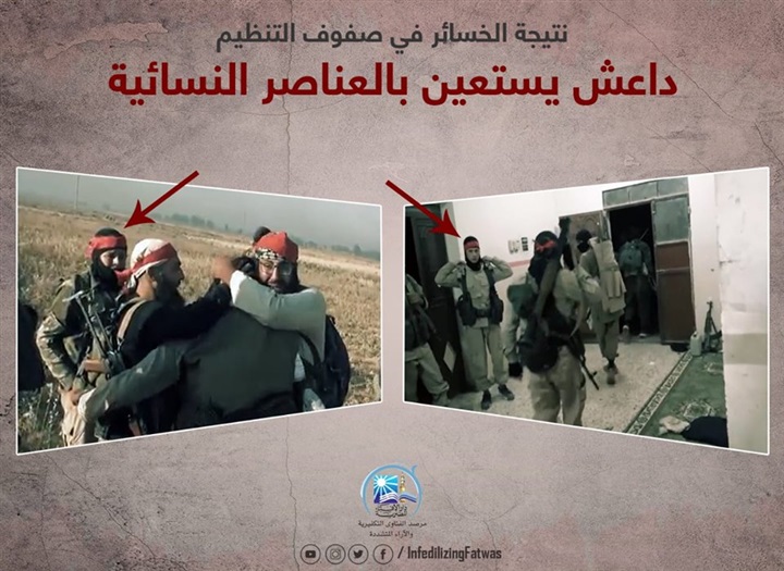 لتنفيذ عمليات تتناقض كليًّا مع نص فتوى إذاعة البيان التابعة للتنظيم فيما يتعلق «بمشاركة المرأة في الغزوات»؛ حيث أكدت أن الأصل في المرأة أنها ليست