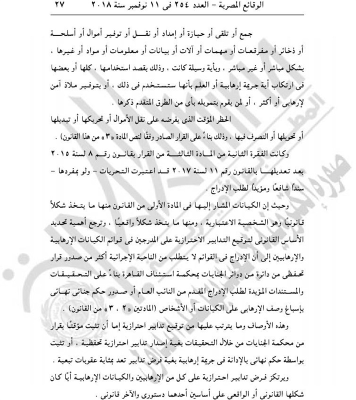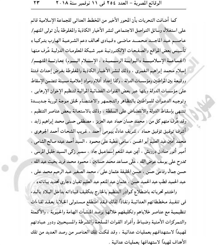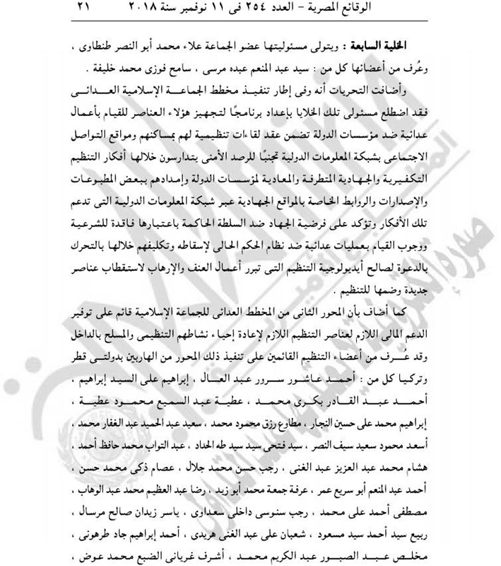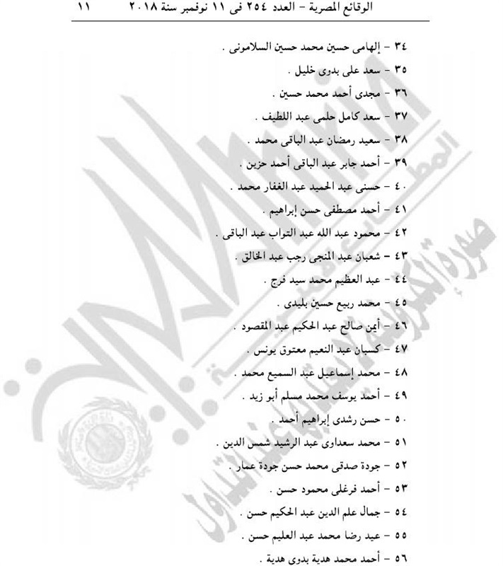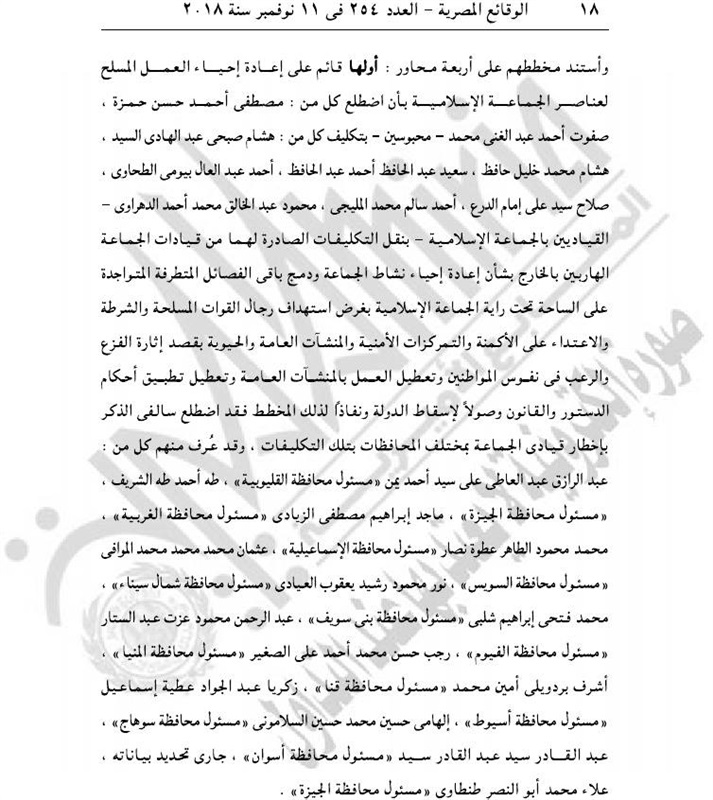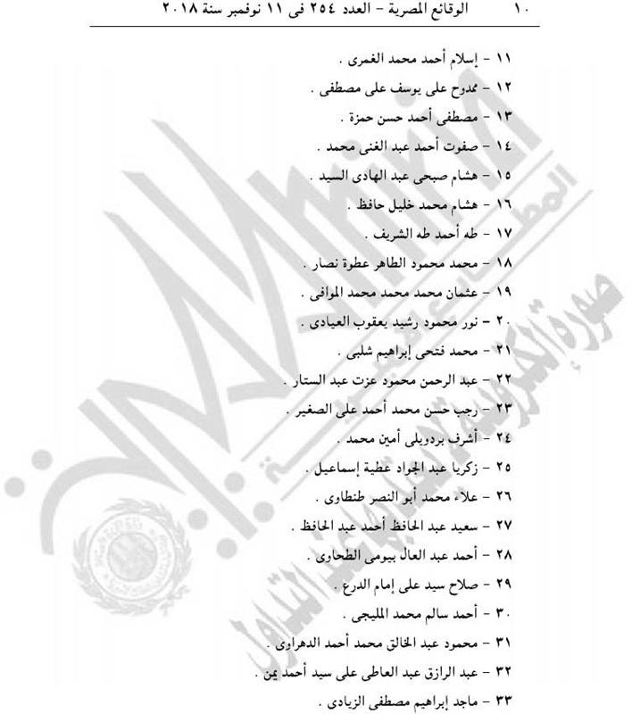 نشرت الجريدة الرسمية، اليوم الأحد، قرار محكمة الجنايات المنعقدة بمعهد أمناء الشرطة بطرة، رقم 1367 لسنة 2018، برئاسة المستشار محمد شرين فهمي بإدراج، 164 فردًا من المنتمين إلى الجماعات الإسلامية على قوائم الإرهاب.