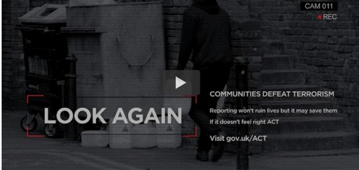 في إطار الجهود الحكومية الغربية، لحث المواطنين على التعاون في خطط مكافحة التطرف، أطلق المكتب الوطني لمكافحة الإرهاب التابع لوزارة الداخلية البريطانية حملة إعلانية بعنوان «المجتمعات الجديدة تهزم الإرهاب»، تنطلق من خلال دور السينما، إذ من المقرر أن يستمر العرض لمدة ثمانية أسابيع مقبلة في 120 دار عرض، بالتزامن مع موسم مهرجان الأوسكار.