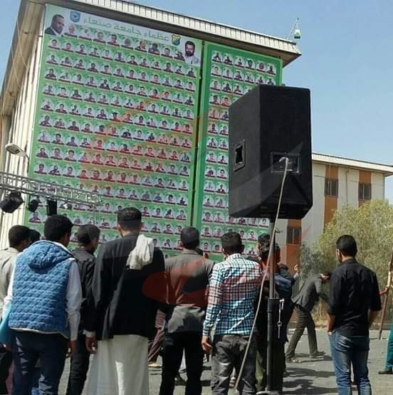 ونشر وزير الإعلام اليمني، «معمر الإرياني»، على حسابه بموقع التواصل الاجتماعي «تويتر»، صور اللوحات التي علقتها الميليشيا في جامعة صنعاء للقتلى من الطلاب، معلقًا: «صور مفزعة لجداريات علقتها الميليشيا الحوثية في جامعة صنعاء لإحياء ما تسميه يوم الشهيد، والمحزن أنه وبدلًا من أن يتخرج هؤلاء المغرر بهم كأطباء ومهندسين ومحامين ليكونوا لبنة صالحة في المجتمع، زجت بهم الميليشيات في حروب عبثية مع الشعب اليمني تنفيذًا لأجندة إيران التخريبية في المنطقة».