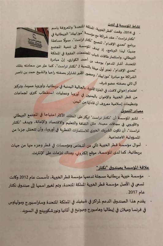 الوثائق أن مؤسسة قطر الخيرية ومقرها الدوحة أعطت شركة «نكتار ترست» أكثر من