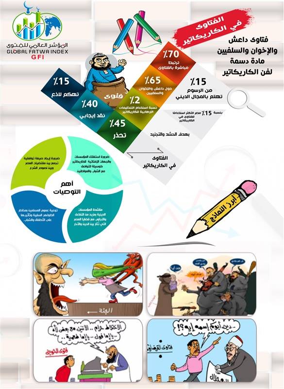 في سابقة تُعد الأولى من نوعها، حلل المؤشر العالمي للفتوى (GFI)، التابع لدار الإفتاء المصرية، الرسوم الكاريكاتيرية التي احتوى مضمونها على قضايا دينية بشكل عام، وفتاوى على وجه الخصوص على مدار عام.